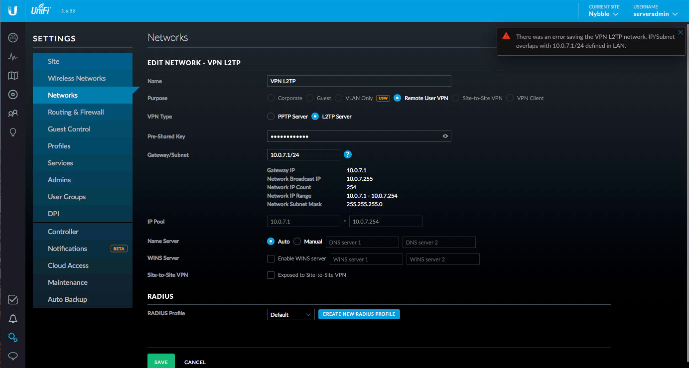 This post will cover the basics of configuring an l2tp vpn on any type of usg. Unifi usg pro configuring remote access vpn radius user configuration. The first step is to log into your usg or. Vpn on unifi usg pro only a single connection i ve been happily using my unifi usg pro for quite a while and today started using the vpn aka l2tp feature of it.